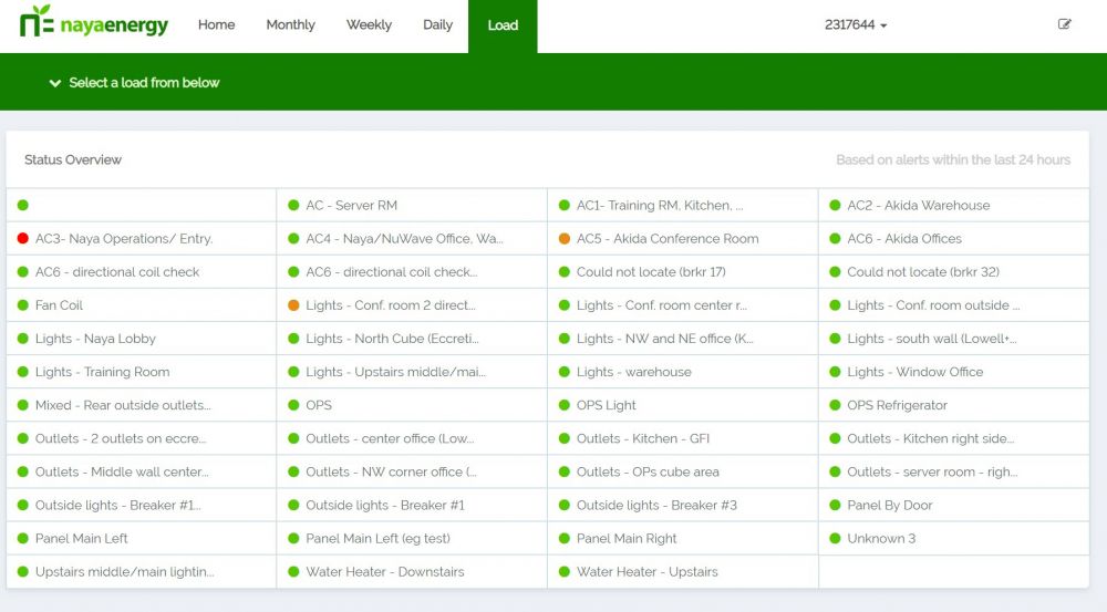 If you're experiencing an increase in energy usage, the Naya ESP™ dashboard will take the data, identify the under-performing load (equipment) and update the Load Dashboard with a color coded system.