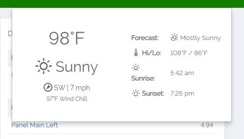 Click on the climate button for up-to-date weather information at your site's location.