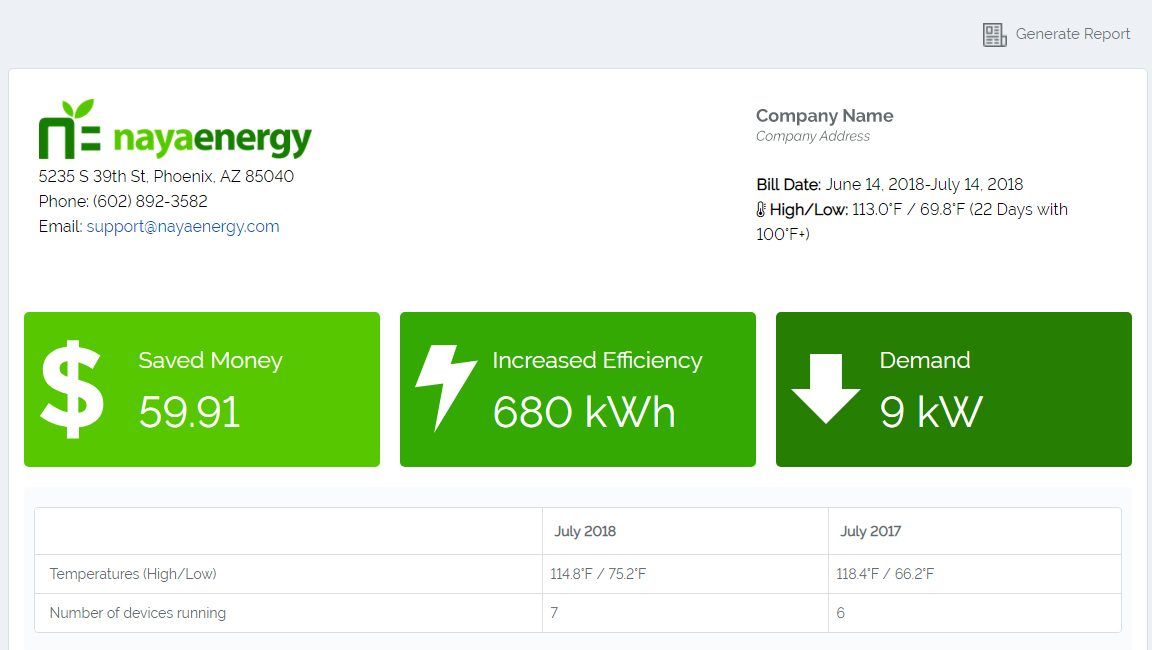 By using sensory technology, Naya ESP™ collects energy data from your equipment and overlays information like your rate plan, demand charges, and if applicable, your solar production.